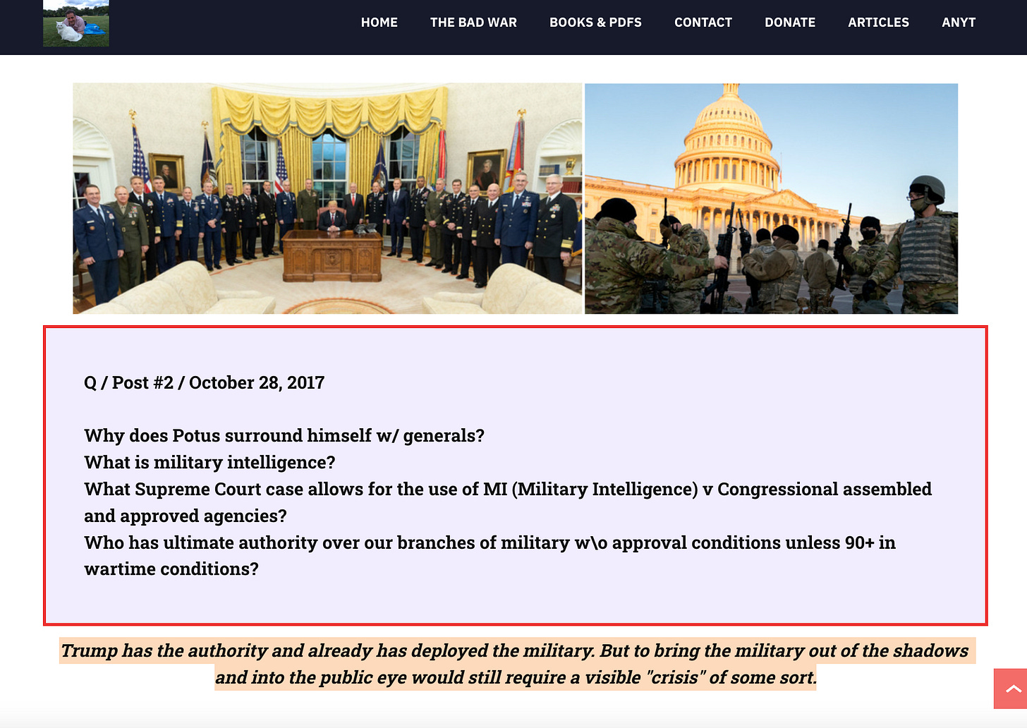 "Trump has the authority and already has deployed the military. But to bring the military out of the shadows and into the public eye would still require a visible "crisis" of some sort."